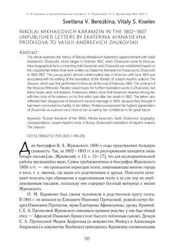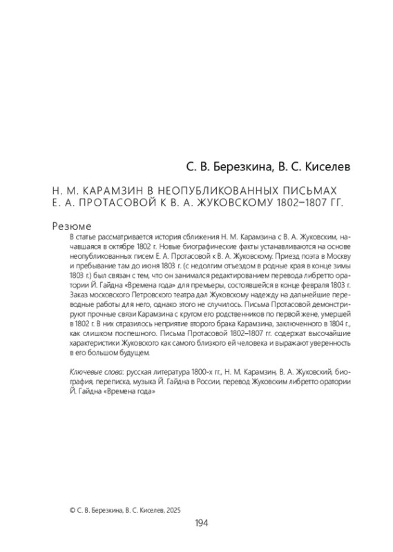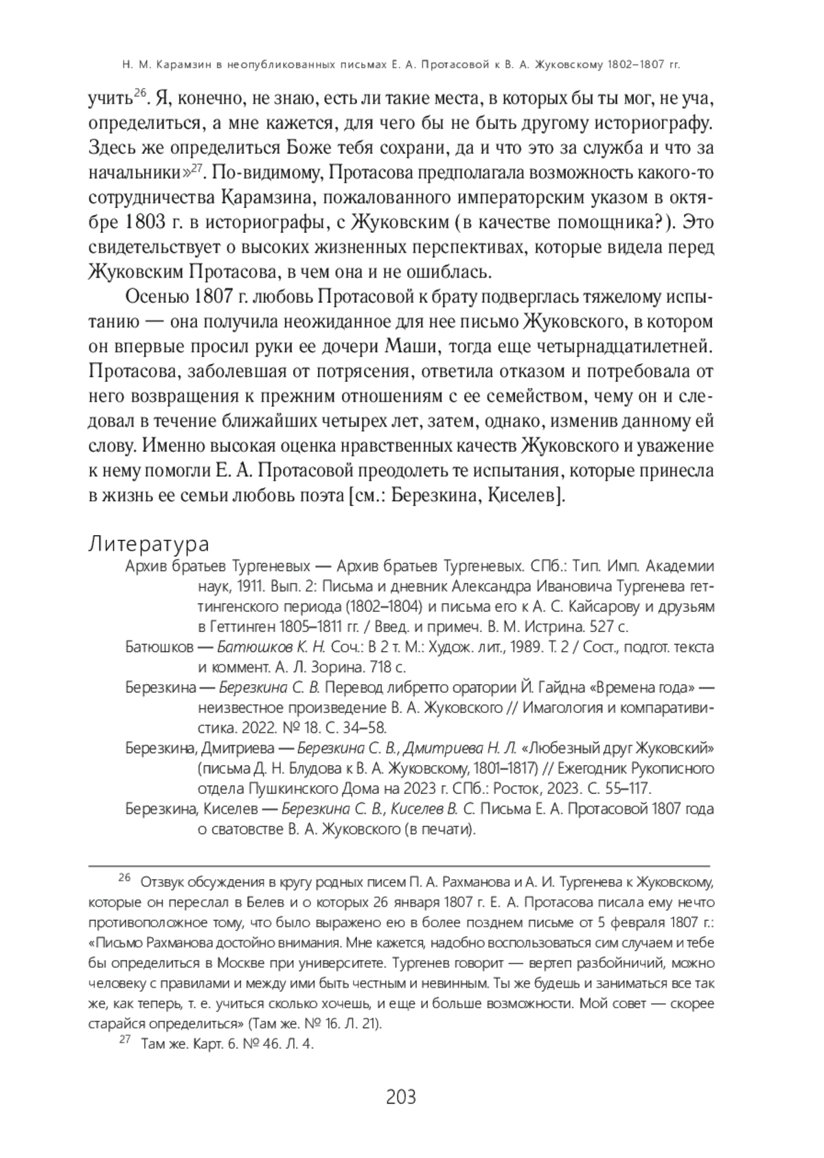 6. Березкина С. В., Киселев В. С. Письма Е. А. Протасовой 1807 года о сватовстве В. А. Жуковского (в печати). EDN: BRUHTK