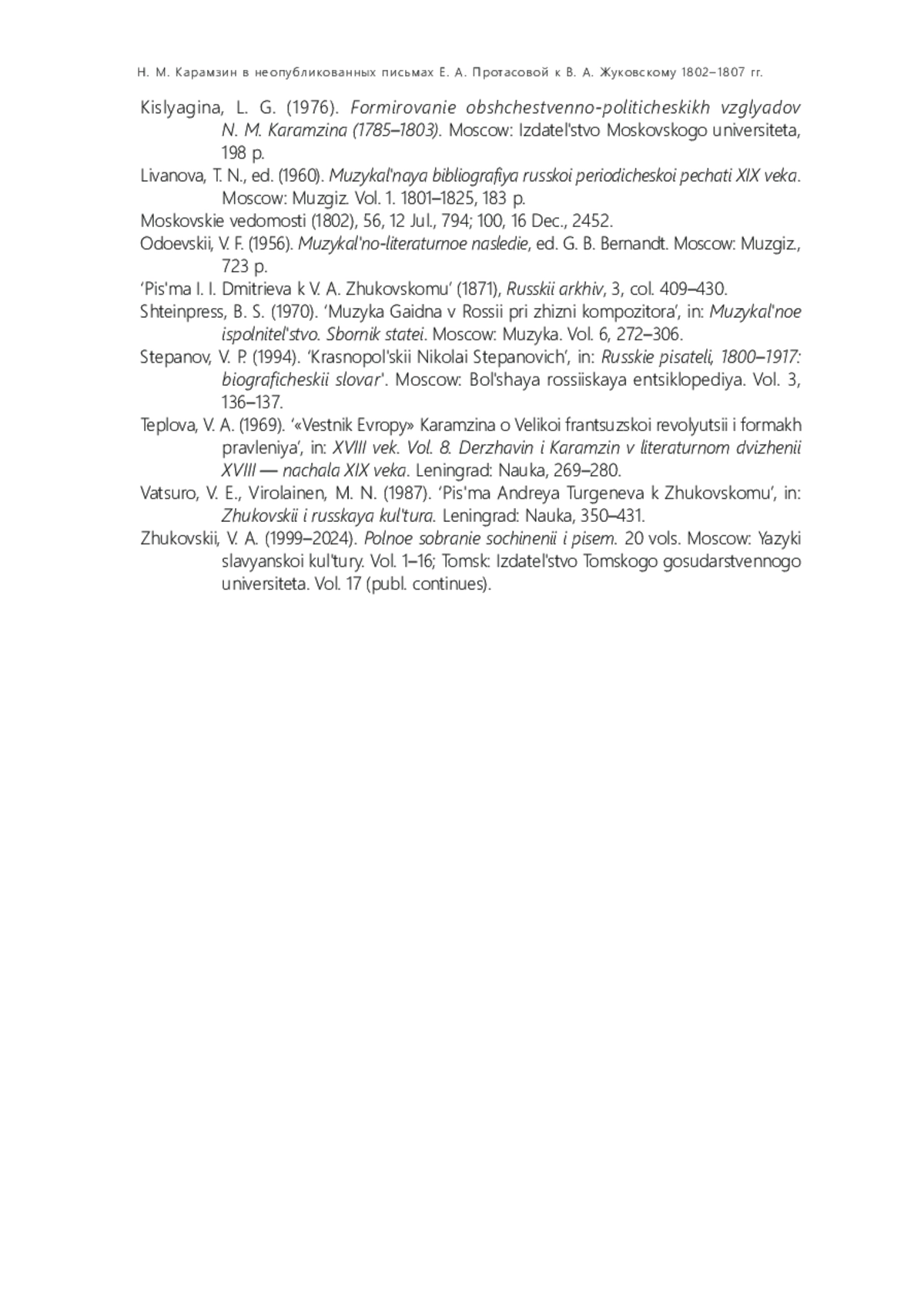 5. Березкина С. В., Киселев В. С. Письма Е. А. Протасовой 1807 года о сватовстве В. А. Жуковского (в печати). EDN: BRUHTK