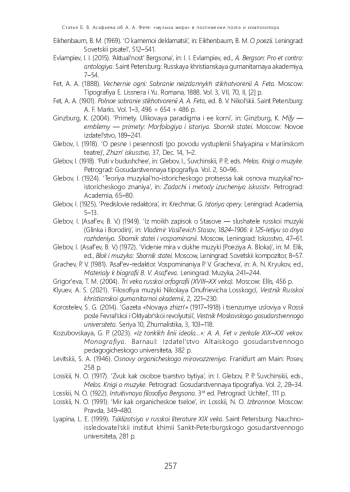 22. Лосский Н. О. Звук как особое царство бытия // Мелос: Книги о музыке / Ред. И. Глебов и П. П. Сувчинский. Пг.: Гос. тип., 1917. Кн. 1. С. 28-34.