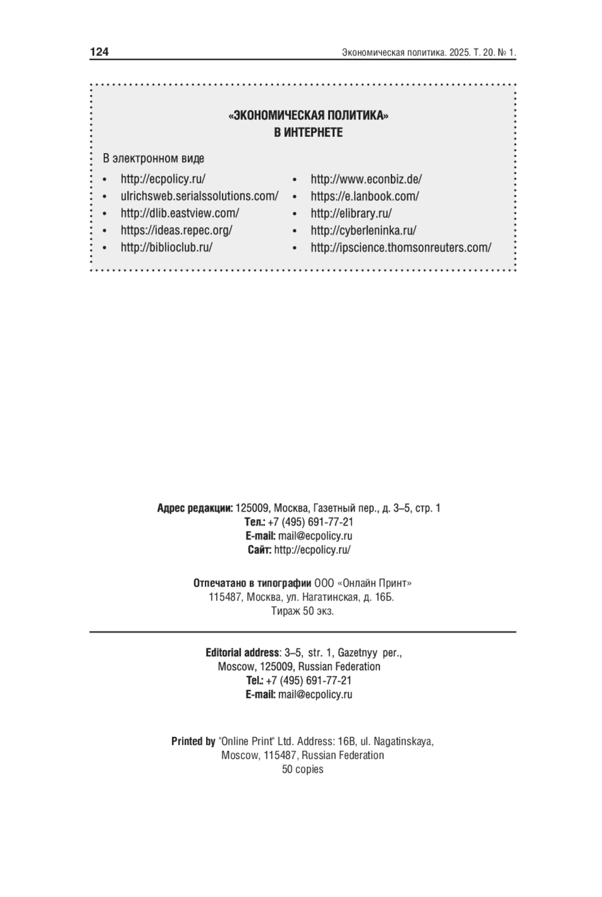 Журнал: ЭКОНОМИЧЕСКАЯ ПОЛИТИКА
