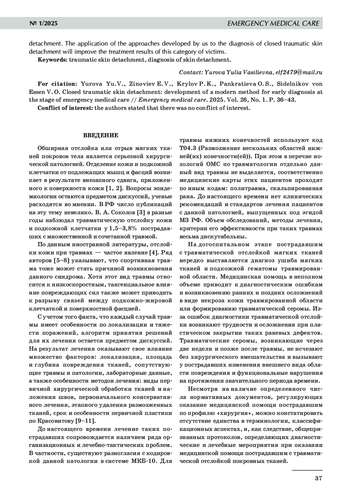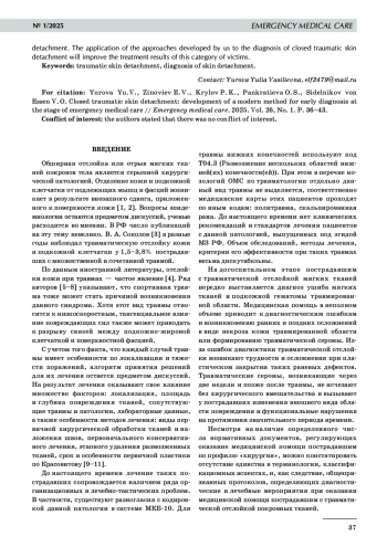 Mikusev I.Ye., Mikusev G. I., Khabibullin R. F. Traumatic skin detachment: issues of diagnosis and treatment. Practical medicine, 2013, Vol. 2, No. 1-2 (69), рр. 104-107 (In Russ.).