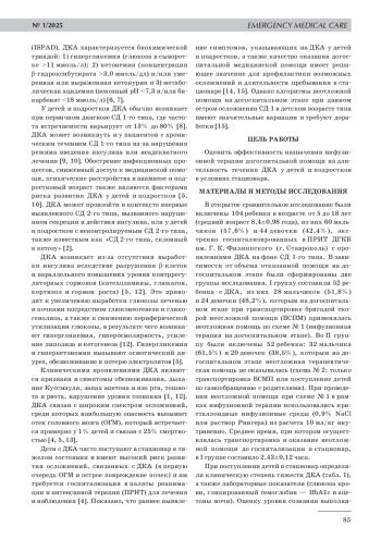 Заключение. Назначение инфузионной терапии догоспитальном этапе у детей является эффективной методикой, позволяющей снизить клинические проявления и осложнения при ДКА в стационаре.