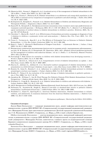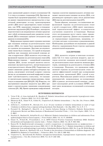 2. 	Dhatariya K.K., Glaser N. S., Codner E., Umpierrez G. E. Diabetic ketoacidosis // Nat. Rev. Dis. Primers. 2020. Vol. 6. P. 40.