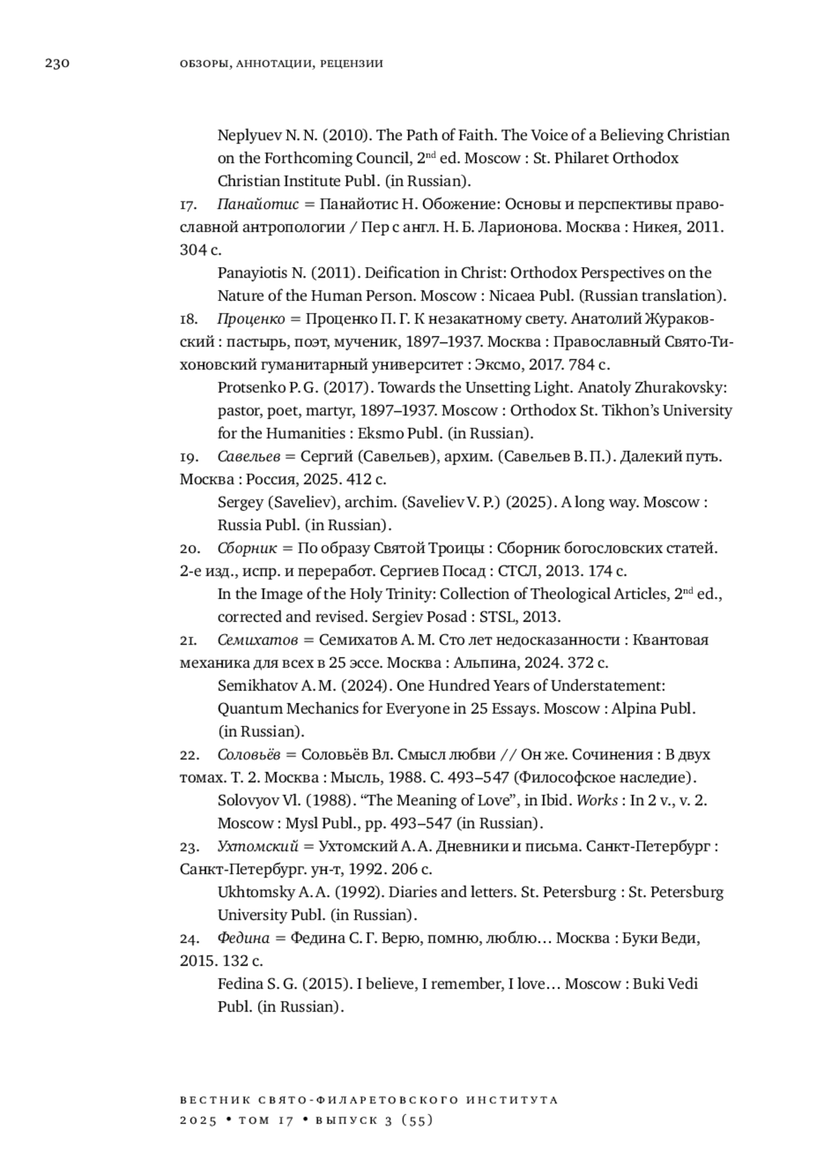 17. Панайотис Н. Обожение: Основы и перспективы православной антропологии / Пер с англ. Н. Б. Ларионова. Москва: Никея, 2011. 304 с.