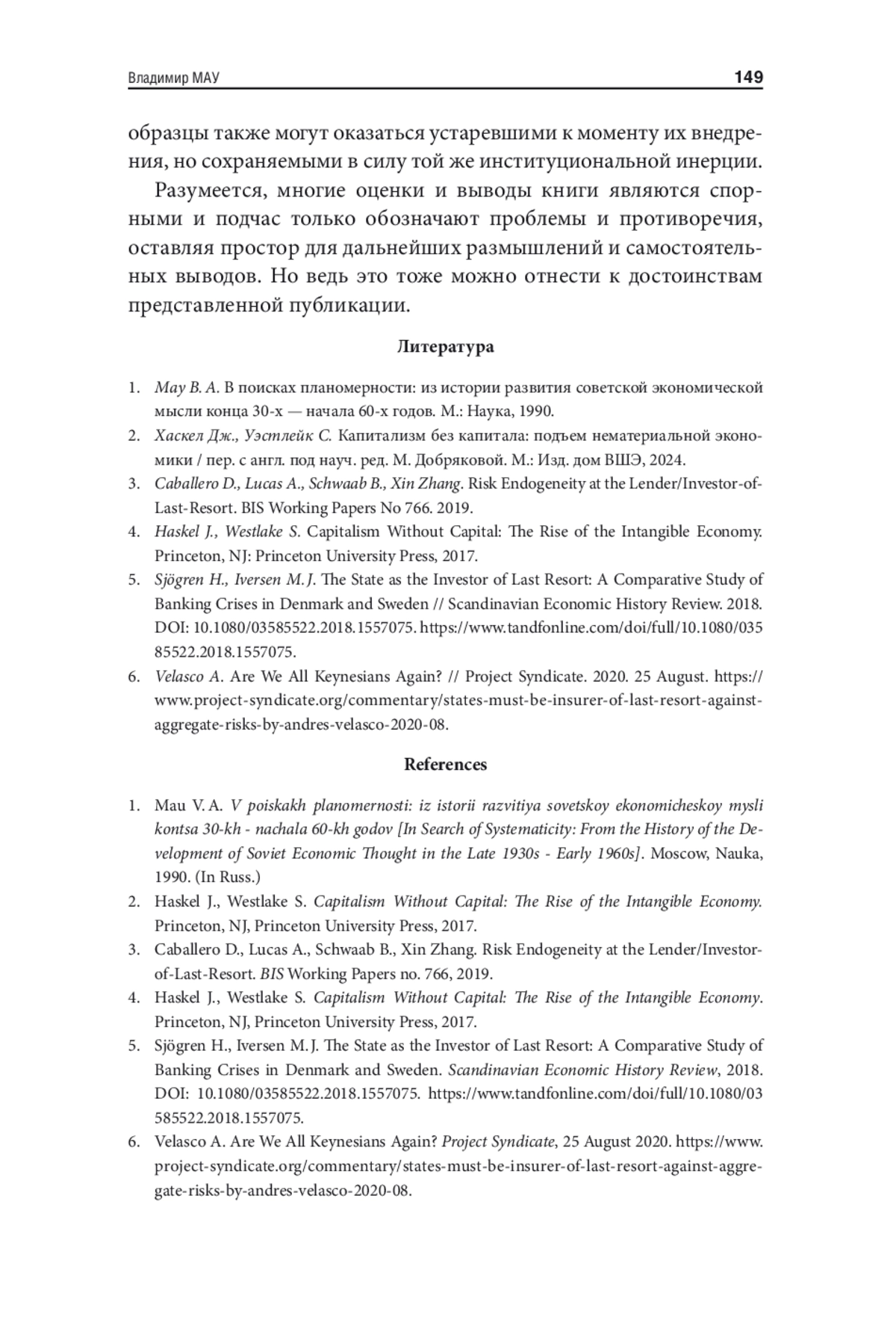 1. Мау В. А. В поисках планомерности: из истории развития советской экономической мысли конца 30-х - начала 60-х годов. М.: Наука, 1990.
