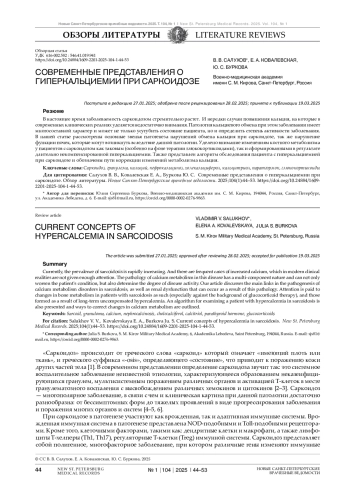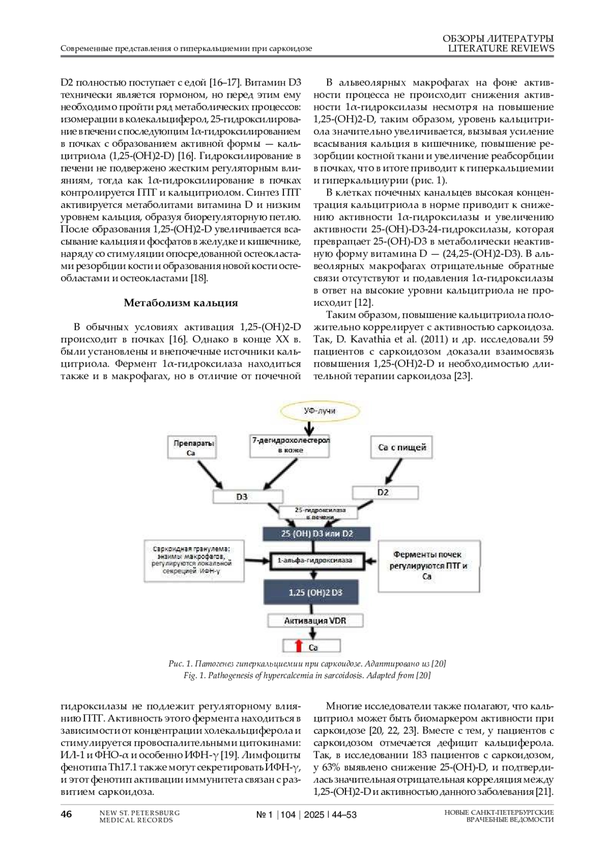 24. 	Vucinic V., Skodric-Trifunovic V., Ignjatovic S. How to diagnose and manage difÏcult problems of calcium metabolism in sarcoidosis: an evidence-based review // Current Opinion in Pulmonary Medicine. 2011. Vol. 17. P. 297-302. DOI: 10.1097/MCP.0b013e328348b3cb