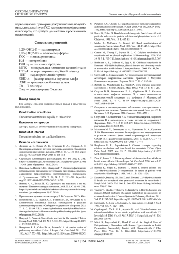 21. 	Zhou Y., Lower E. E. Balancing altered calcium metabolism with bone health in sarcoidosis // Semin Respir Crit Care Med. 2020. Vol. 41. P. 618-625. DOI: 10.1055/s-0040-1713009