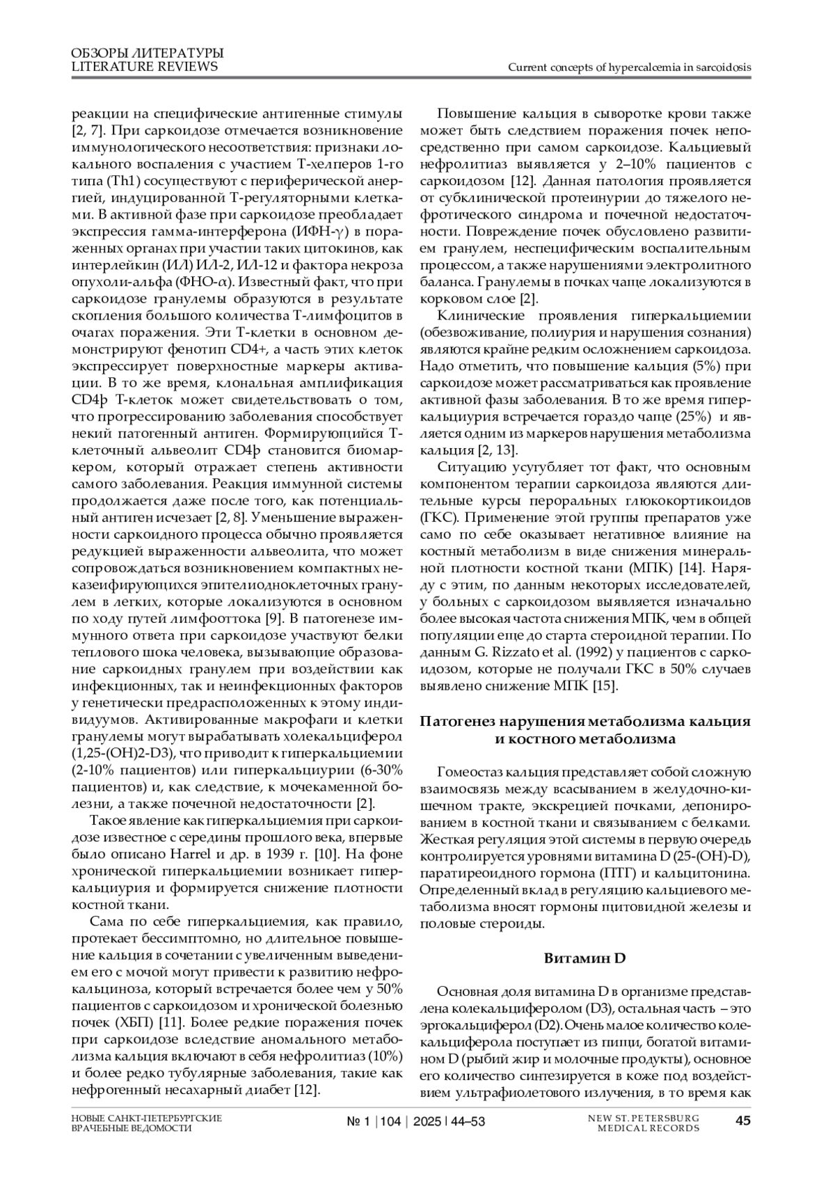 22. 	Hamada K., Nagai S., Tsutsumi T., Izumi T. Ionized calcium and 1,25-dihydroxyvitamin D concentration in serum of patients with sarcoidosis // Eur Respir J. 1998. Vol. 11. P. 1015-1020.