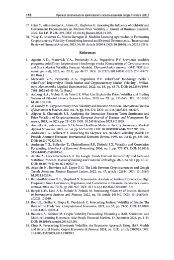 12. Bergsli L.Ø., Lind A.F., Molnár P., Polasik M. Forecasting Volatility of Bitcoin // Research in https://doi.org/rnationalBusinessandFinance.2022.No59.Article101540.DOI:10.1016/j.ribaf.2021.101540.