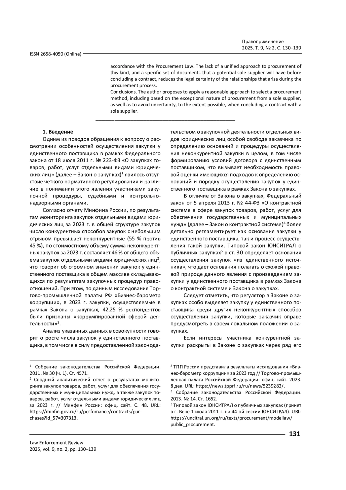 13. Тарасов М. Ю. Закупка у единственного поставщика: вопросы правоприменительной практики и совершенствования законодательства / М. Ю. Тарасов, Е. В. Ступаченко // Право и государство: теория и практика. - 2023. - № 10 (226). - С. 220-224.