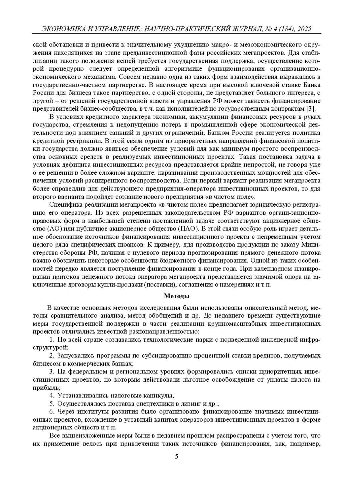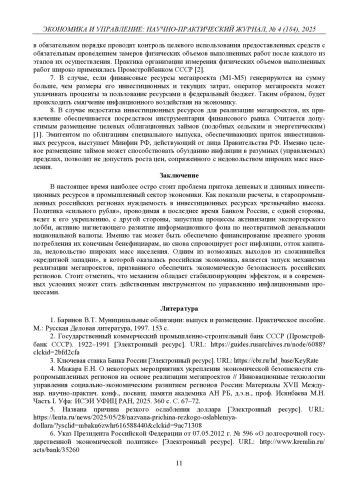 4. Мажара Е.Н. О некоторых мероприятиях укрепления экономической безопасности старопромышленных регионов на основе реализации мегапроектов // Инновационные технологии управления социально-экономическим развитием регионов России: Материалы XVII Междунар. научно-практич. конф., посвящ. памяти академика АН РБ, д.э.н., проф. Исянбаева М.Н. Часть I. Уфа: ИСЭИ УФИЦ РАН, 2025. 360 с. С. 67-72. EDN: TWYZWN