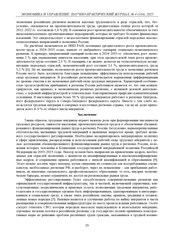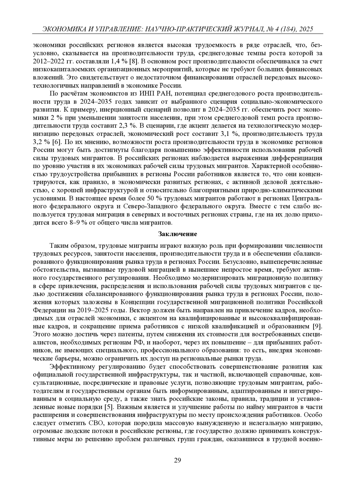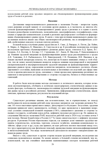 3. 	Коровникова Н.А. Трудовая миграция в регионах Российской Федерации: тенденции, потенциал, перспективы // Социальные новации и социальные науки. 2024. № 1. С. 50-64. EDN: JQZCCW