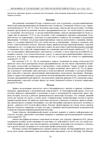 Для развития экономики России, и прежде всего для ее регионов с ресурсоориентированными отраслями промышленности (Башкортостан, Татарстан, Тюменская область и др.), макроэкономические [2; 18; 20; 23; 24] и бюджетно-налоговые стимулы [6] недостаточны. Особенно важным представляется развитие частного предпринимательства. Эта необходимость вытекает из следующих обстоятельств: а) ресурсоориентированные отрасли промышленности были созданы еще во времена СССР и, как следствие, в них доминируют крупные корпорации. Большей частью это корпорации с участием государственного капитала, не склонные к внутренним инновациям. Особенно эти ресурсоориентированные отрасли резистентны к внешним инновациям, т. к. их норма прибыли и без того очень высока, а конкуренция – низкая (в основном, действует олигополическая модель). Высокая норма прибыли ресурсоориентированных отраслей, сращенность их с государством позволяют влиять на налоговые и институциональные решения в отношении этих отраслей, направленные на сохранение высокой нормы прибыли [7; 11; 18]. Это дестимулирует инновационную деятельность, особенно в части перехода российской экономики к новому, 6-му технологическому укладу. А сами ресурсоориентированные отрасли относятся к 4-му (нефть и нефтепродукты) и 5-му (газ и устройства на основе его применения) укладам [10; 13; 14].