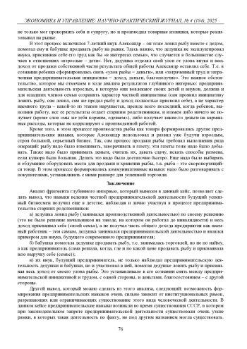 В статье проведен институциональный анализ условий возникновения предпринимательства в стране на примере одного успешного предпринимателя средних лет методом глубинного интервью: прослежена история того, как человек из обычной семьи, в условиях формальных институтов советского времени, вовлекается в частнопредпринимательскую деятельность и становится успешным бизнесменом. Этот анализ очень важен в современных условиях, когда Россия стоит перед необходимостью развития экономики страны на основе инновационных отраслей, а последние, как показывает мировая практика, возникают из венчурных предприятий, частной инициативы, малого и среднего предпринимательства. В статье, на основе анализа биографии успешного предпринимателя, выделены институты, которые способствуют формированию предпринимательских качеств у человека с детства