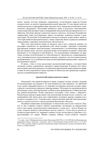 Договор аренды является настолько привычным явлением в жизни любого общества, что кажется, будто регулярность его применения делает излишним какойлибо обобщающий доктринальный анализ. Тем более это касается анализа исторического, сконцентрированного не на современности, а на глубокой древности.