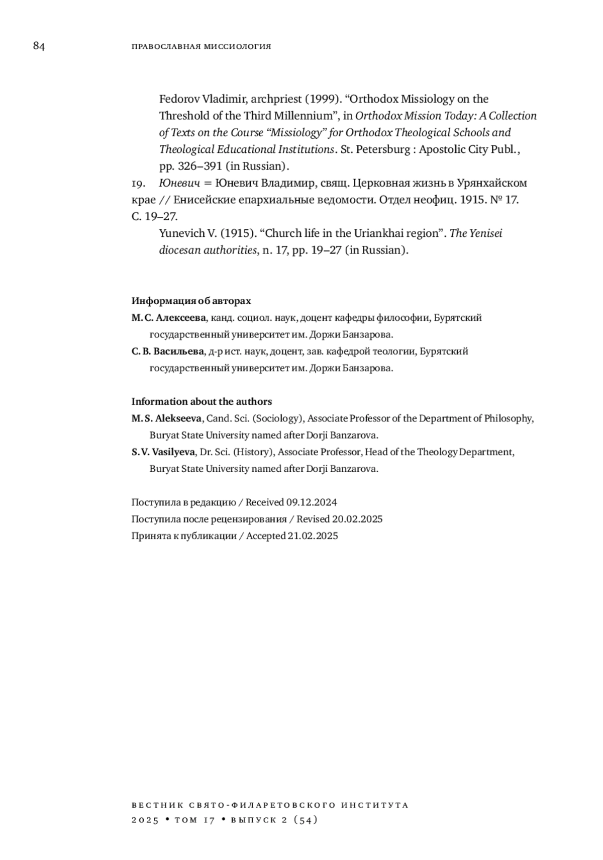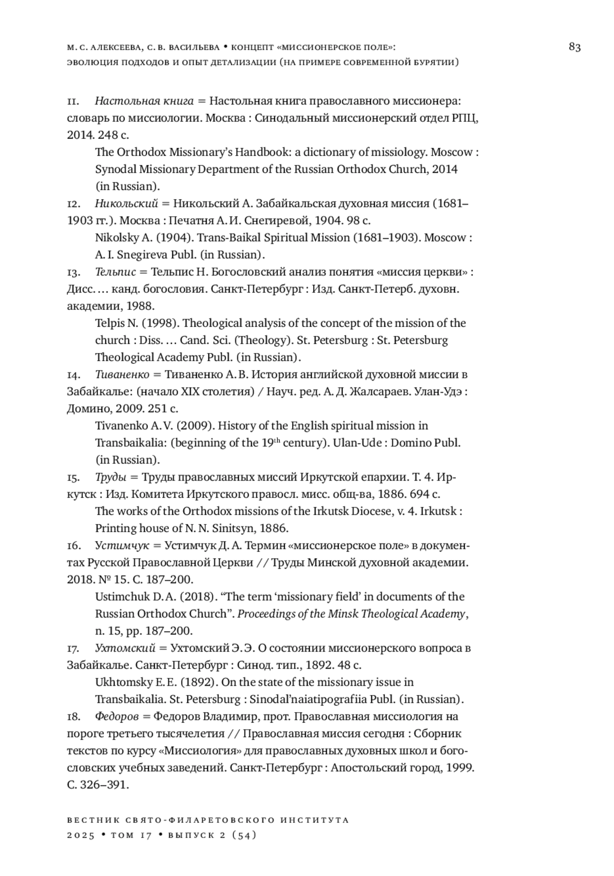 29. Устимчук Д. А. Термин “миссионерское поле” в документах Русской Православной Церкви // Труды Минской духовной академии. 2018. № 15. С. 187-200. EDN: DQWWHA