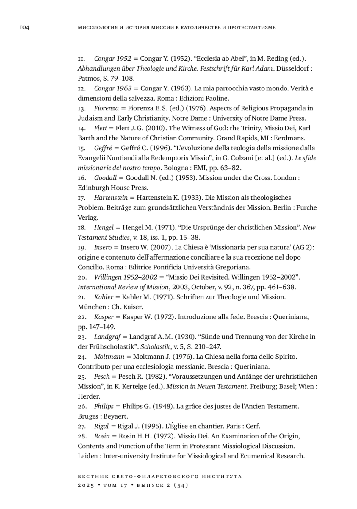 23. Congar Y. (1952). “Ecclesia ab Abel”, in M. Reding (ed.). Abhandlungen über Theologie und Kirche. Festschrift für Karl Adam. Düsseldorf: Patmos, S. 79-108.