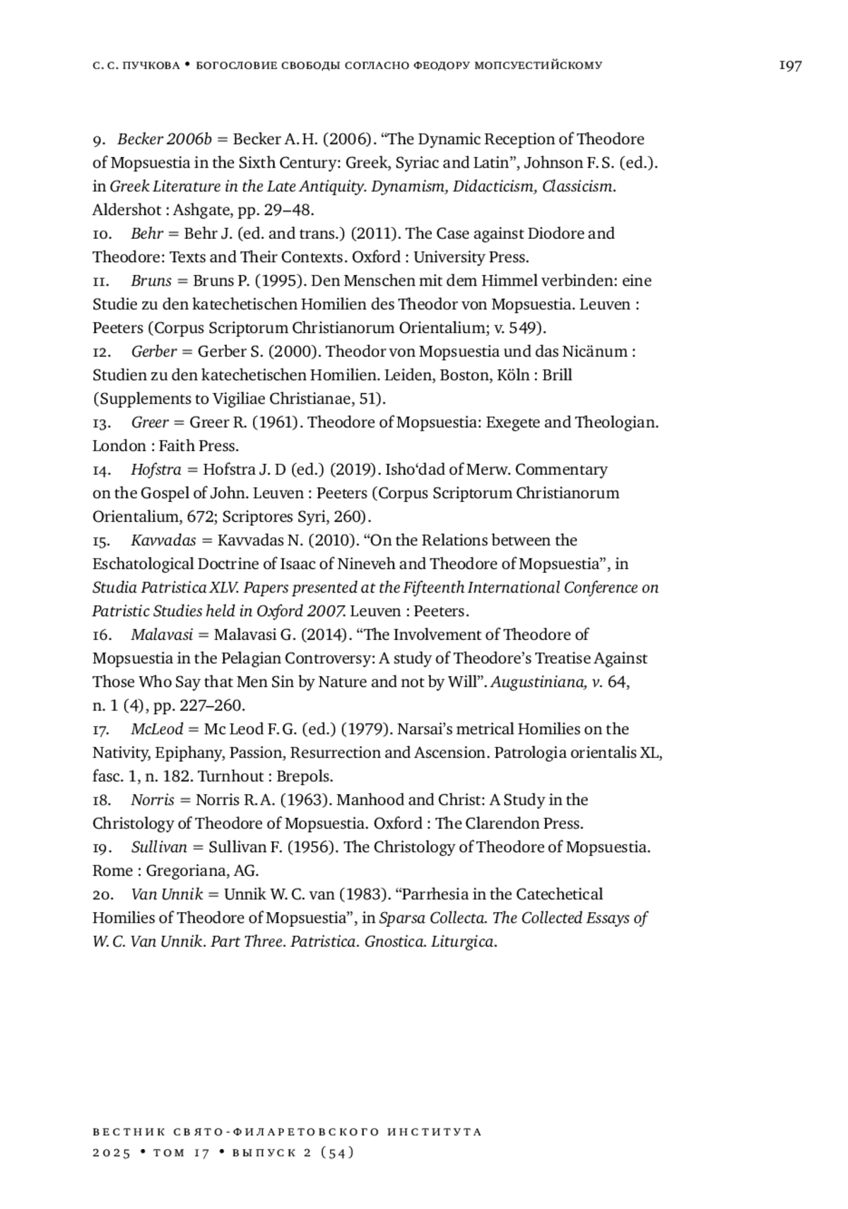 12. Gerber S. (2000). Theodor von Mopsuestia und das Nicänum: Studien zu den katechetischen Homilien. Leiden, Boston, Köln: Brill (Supplements to Vigiliae Christianae, 51).