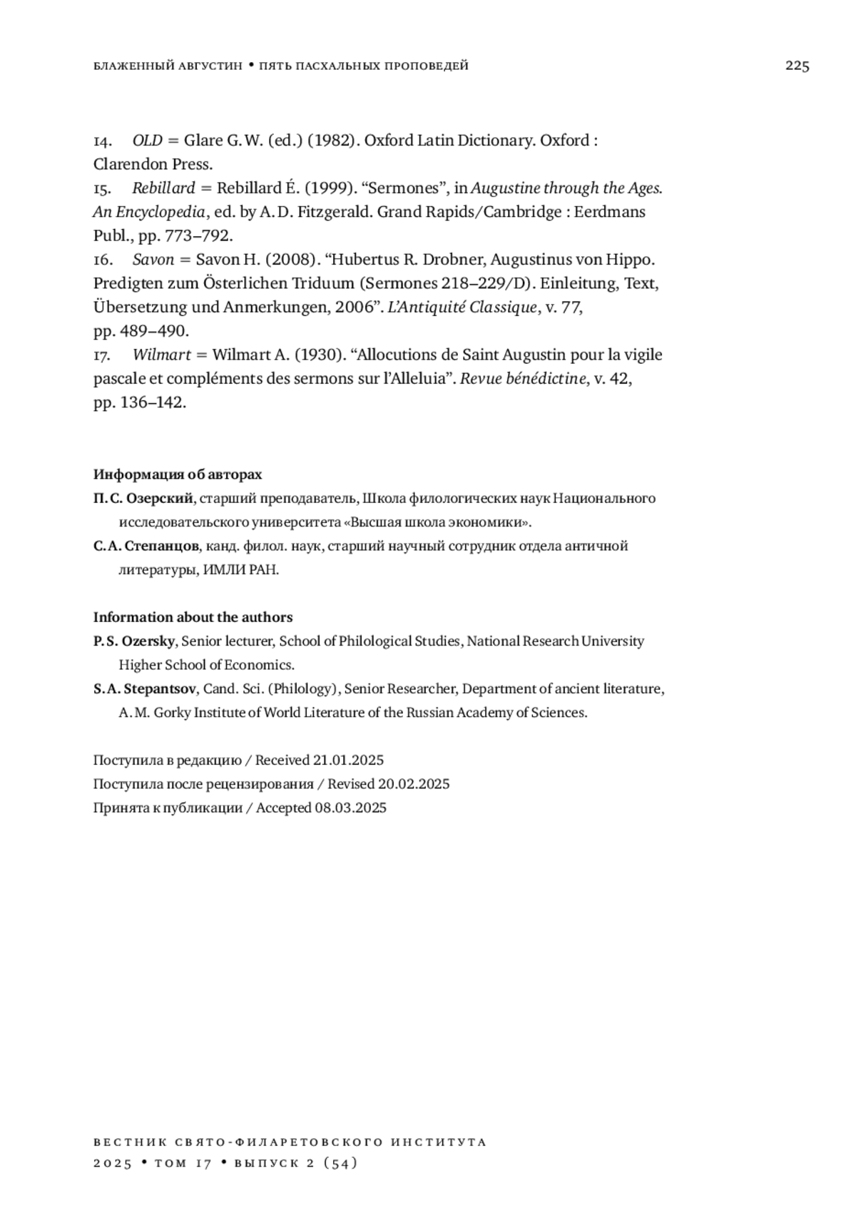 3. Степанцов С. А. Последний стих Псалма 120 в экзегезе Августина // Monumentum Gregorianum: Сборник научных статей памяти академика Г. М. Бонгард-Левина. Москва: Граница, 2013. С. 437-441. EDN: BQZRJH