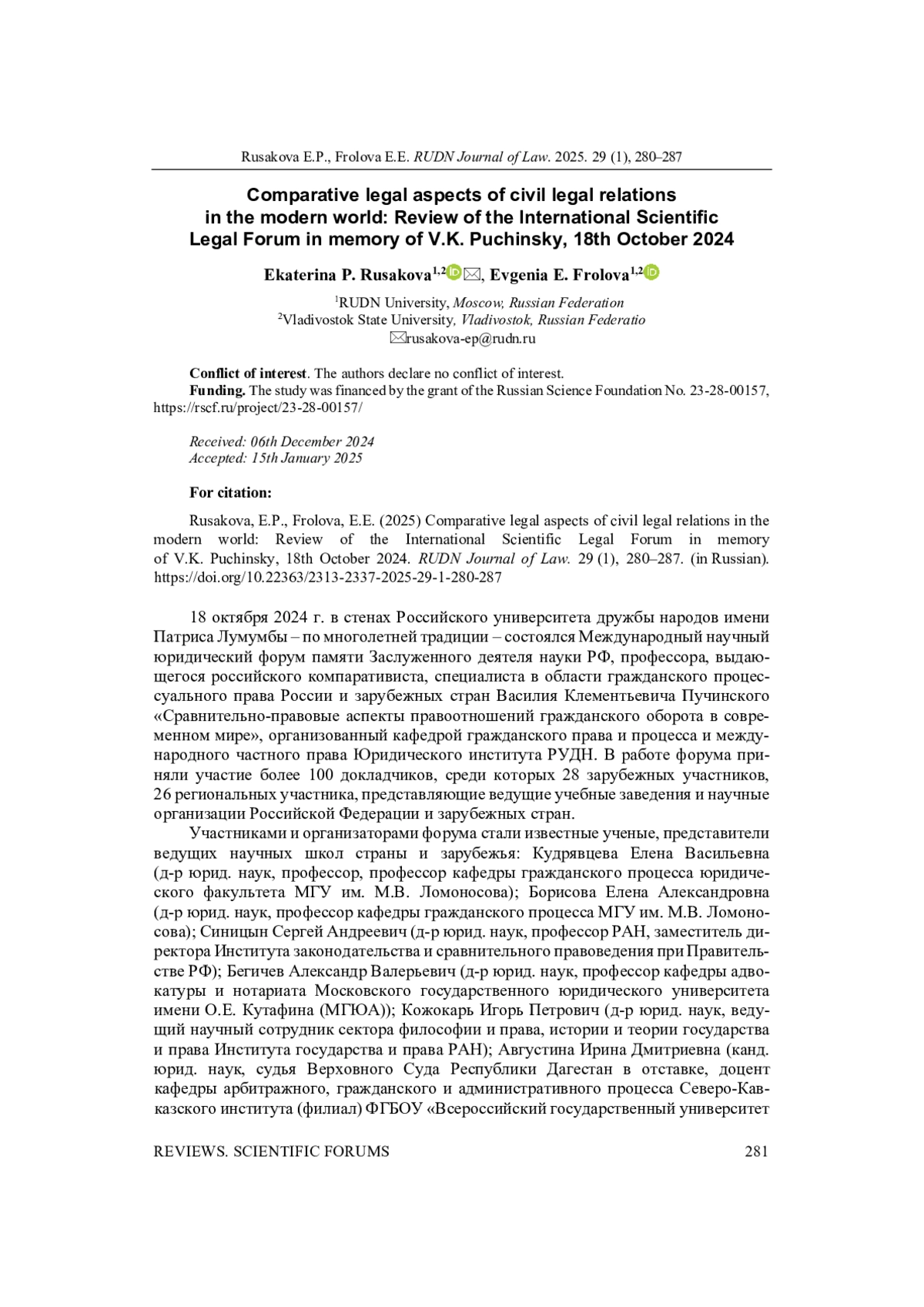 18 октября 2024 г. в стенах Российского университета дружбы народов имени Патриса Лумумбы – по многолетней традиции – состоялся Международный научный юридический форум памяти Заслуженного деятеля науки РФ, профессора, выдающегося российского компаративиста, специалиста в области гражданского процессуального права России и зарубежных стран Василия Клементьевича Пучинского «Сравнительно-правовые аспекты правоотношений гражданского оборота в современном мире», организованный кафедрой гражданского права и процесса и международного частного права Юридического института РУДН.