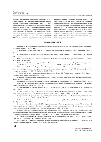 8. Братусь С. Н. Некоторые вопросы проекта ГК СССР / С. Н. Братусь // Советское государство и право. - 1948. - № 12. - С. 10-23.