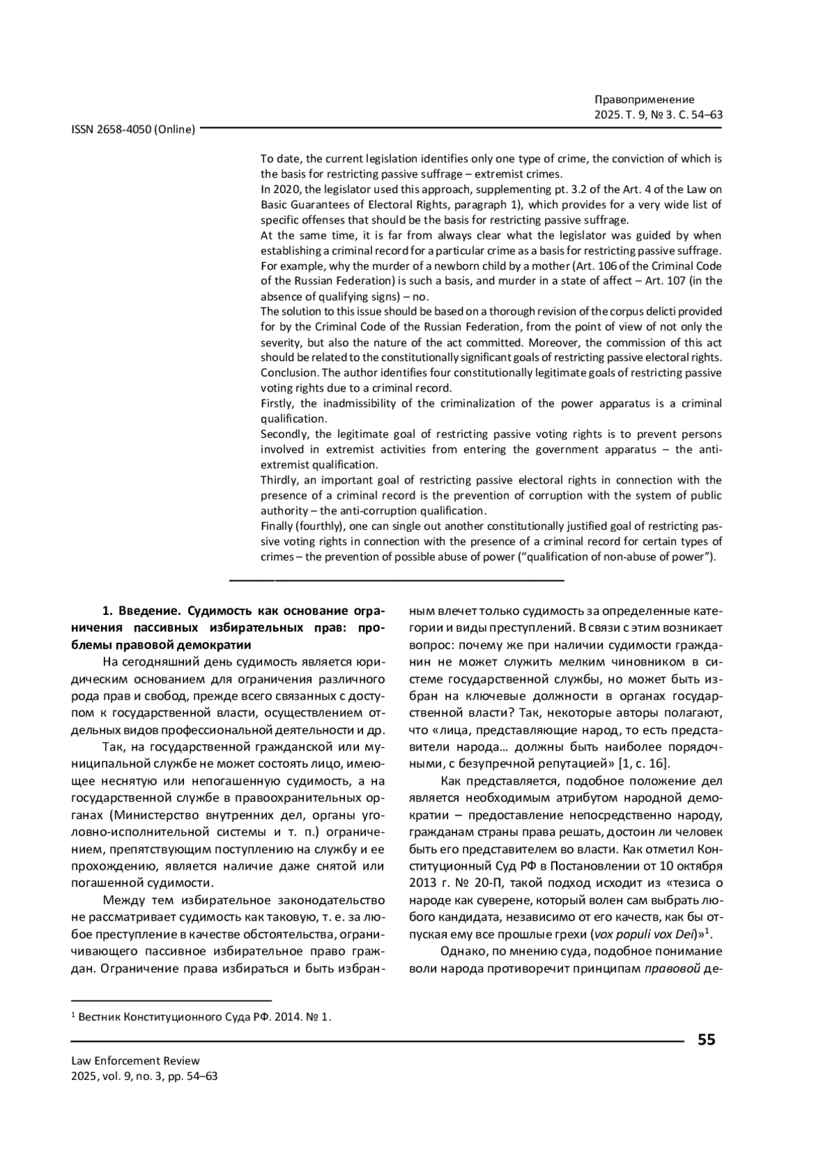 15. Евтушенко С. М. Ограничение пассивного избирательного права в связи с совершением преступлений и правонарушений экстремистской направленности / С. М. Евтушенко // Современное право. - 2023. - № 7. - С. 56-60. - https://doi.org/10.25799/NI.2023.44.87.009.