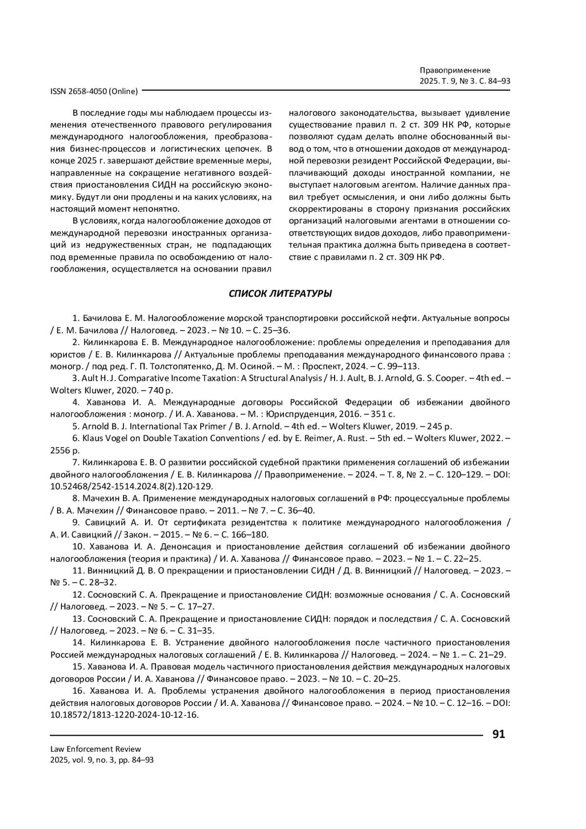 16. Хаванова И. А. Проблемы устранения двойного налогообложения в период приостановления действия налоговых договоров России / И. А. Хаванова // Финансовое право. - 2024. - № 10. - С. 12-16. - https://doi.org/10.18572/1813-1220-2024-10-12-16.