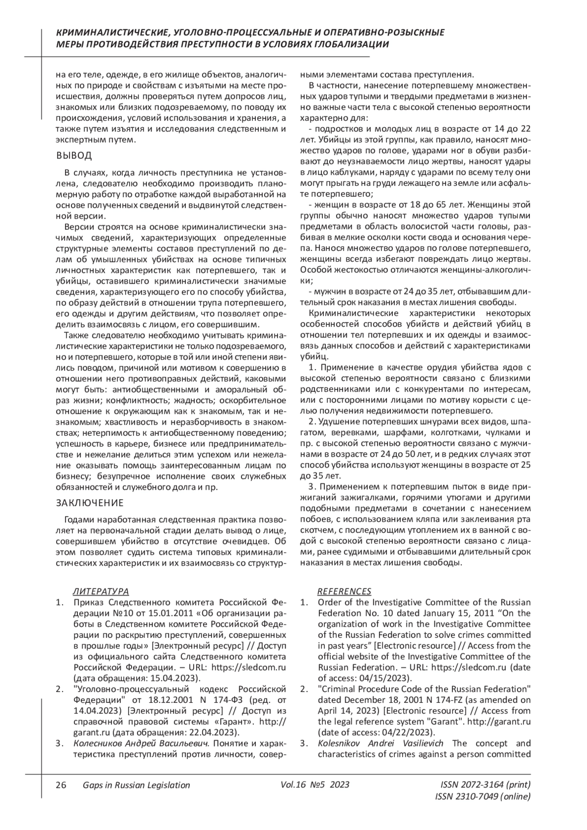 “Criminal Procedure Code of the Russian Federation” dated December 18, 2001 N 174-FZ (as amended on April 14, 2023) [Electronic resource] // Access from the legal reference system “Garant”. http://garant.ru (date of access: 04/22/2023).