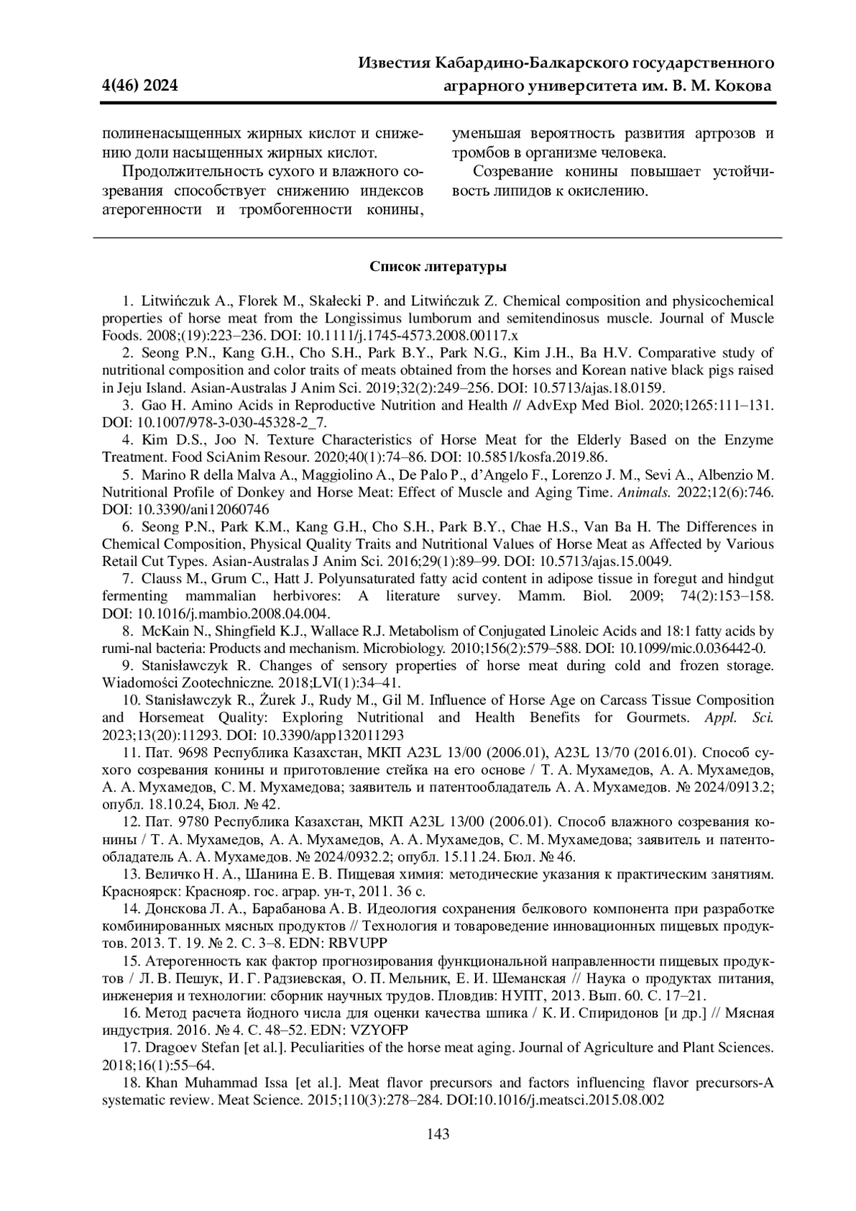 17. Dragoev Stefan [et al.]. Peculiarities of the horse meat aging. Journal of Agriculture and Plant Sciences. 2018;16(1):55-64.