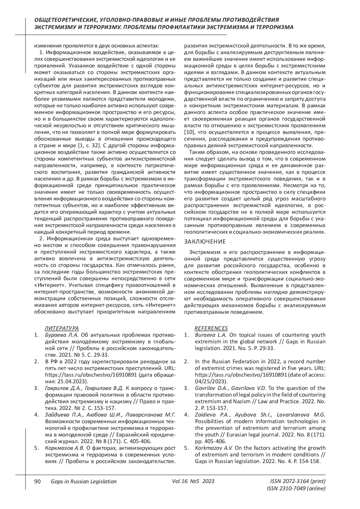 Статья: АКТУАЛЬНЫЕ ПРОБЛЕМЫ БОРЬБЫ С ЭКСТРЕМИЗМОМ В ИНФОРМАЦИОННОЙ СРЕДЕ (2023)