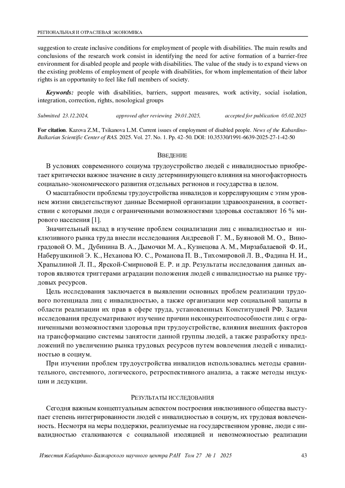 В условиях современного социума трудоустройство людей с инвалидностью приобретает критически важное значение в силу детерминирующего влияния на многофакторность социально-экономического развития отдельных регионов и государства в целом.