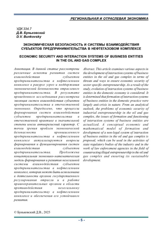В данной статье рассмотрены различные аспекты развития систем взаимодействия субъектов предпринимательства в нефтегазовом комплексе в ракурсе угроз и поддержания экономической безопасности отраслевого предпринимательства. В результате проведенного исследования рассмотрена эволюция систем взаимодействия субъектов предпринимательства в отечественной экономике. Определено, что процессы формирования систем взаимодействия субъектов предпринимательства в отечественной практике в значительной степени имели антикризисный характер. С точки зрения проблем экономической безопасности промышленного предпринимательства в нефтегазовом комплексе актуализируются вопросы формирования и функционирования систем взаимодействия субъектов предпринимательства. Предложена концептуальная экономико-математическая модель формирования и развития нелегальной системы взаимодействия субъектов предпринимательства в нефтегазовом комплексе, которая может быть использована в деятельности органов государственного регулирования отрасли и в работе правоохранительных органов в области противодействия нелегальному предпринимательству в нефтегазовом комплексе и обеспечения его устойчивого развития.