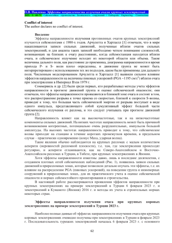 7. Abdelmeguid M., Zhao C., Yalcinkaya E., Gazetaz G., Elbanna A., Rosakis A. Dynamics of episodic supershear in the 2023 M7.8 Kahramanmaraş/Pazarcik earthquake, revealed by near-field records and computational modeling.Communications Earth and Environment. 2023, vol. 4. DOI: 10.1038/s43247-023-01131-7