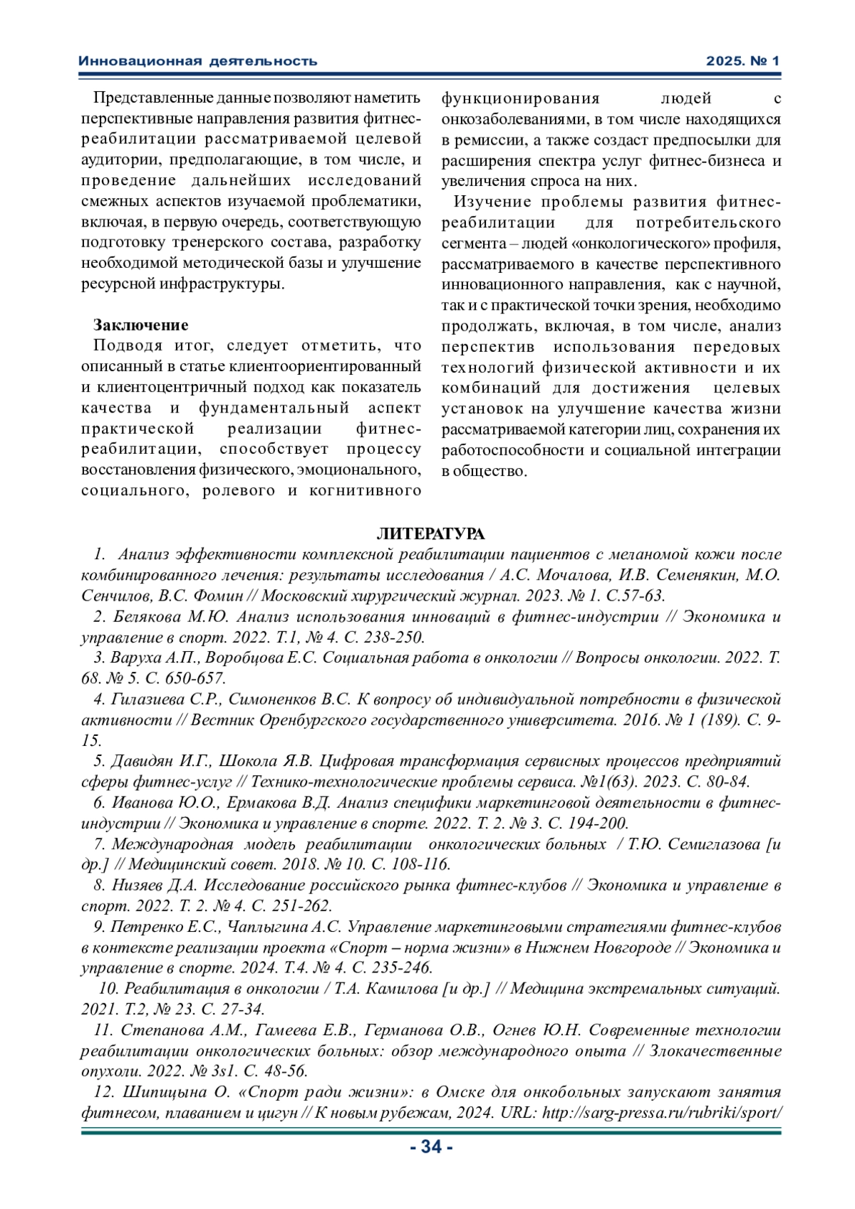 Статья посвящена проблеме развития омского рынка фитнес-услуг и оценке целесообразности внедрения программ фитнес-реабилитации для больных онкологического профиля, находящихся в ремиссии. Цель исследования заключается в формировании необходимой информационно- аналитической базы, позволяющей оценить актуальность и практическую значимость вовлечения фитнес-организаций в процесс реабилитации больных онкологического профиля, в том числе находящихся в стадии ремиссии, и наметить перспективные направления развития их физической реабилитации. Основные результаты теоретического характера заключаются в уточнении трактовки категории «фитнес- реабилитация», имеющей достаточно широкий спектр полезных воздействий, функциональное проявление которых включает как улучшение процессов адаптации и повышение работоспособности, так и формирование способности восстанавливаться в целостной культуре активной жизнедеятельности. К результатам прикладного характера относятся выявление и оценка: 1) вовлеченности фитнес-индустрии Омска в проблему физической и социальной адаптации больных онкологического профиля, в том числе находящихся в ремиссии, а также готовности фитнес-организаций к привлечению данной категории к фитнес-реабилитации и их способности организовать и практически осуществить сам процесс; 2) заинтересованности данной целевой аудитории в перспективах и возможностях фитнес-активности и ее вовлеченность в практическую реализацию процесса. Авторы полагают, что необходимо дальнейшее изучение направлений развития фитнес- индустрии региона с позиции клиентоориентированного и клиентоцентричного подходов для нового потребительского сегмента, а также анализ перспектив использования передовых технологий физической активности и их комбинаций для достижения целевых установок на улучшение качества жизни представителей данного сегмента, сохранения работоспособности и социальной интеграции в общество.