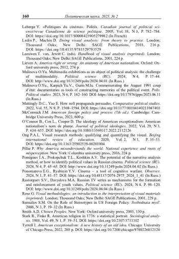 4. Малинова О.Ю. Мультимедийные выставки как предмет политологического исследования: вызов мультимодальности // Политическая наука. - 2024. - № 4. - С. 17-44. - https://doi.org/http://www.doi.org/10.31249/poln/2024.04.01