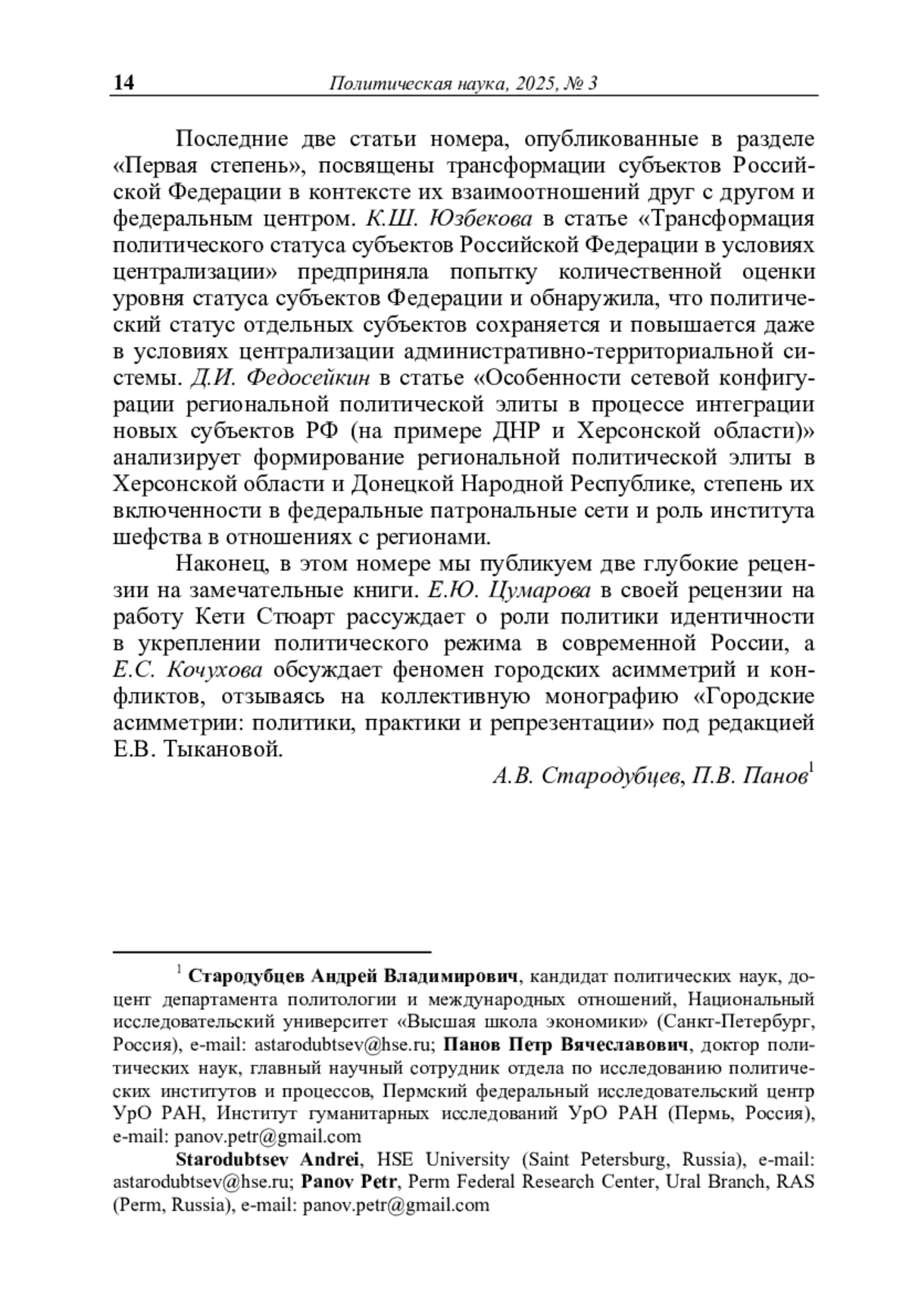 Вступительное слово от редакции журнала “ПОЛИТИЧЕСКАЯ НАУКА” к выпуску №3 (2025г.)