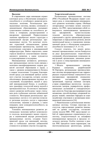 Статья: РЕГИОНАЛЬНЫЕ ПРОМЫШЛЕННЫЕ СИСТЕМЫ В КОНТЕКСТЕ ИННОВАЦИОННОГО РАЗВИТИЯ ЭКОНОМИКИ (2025)