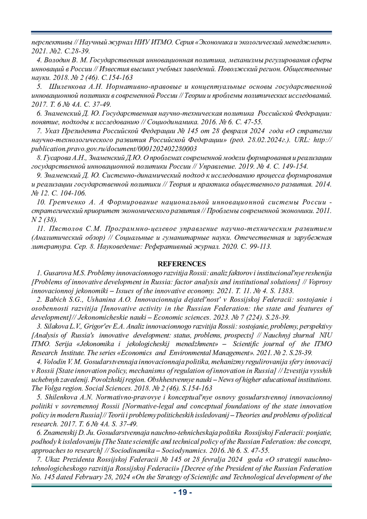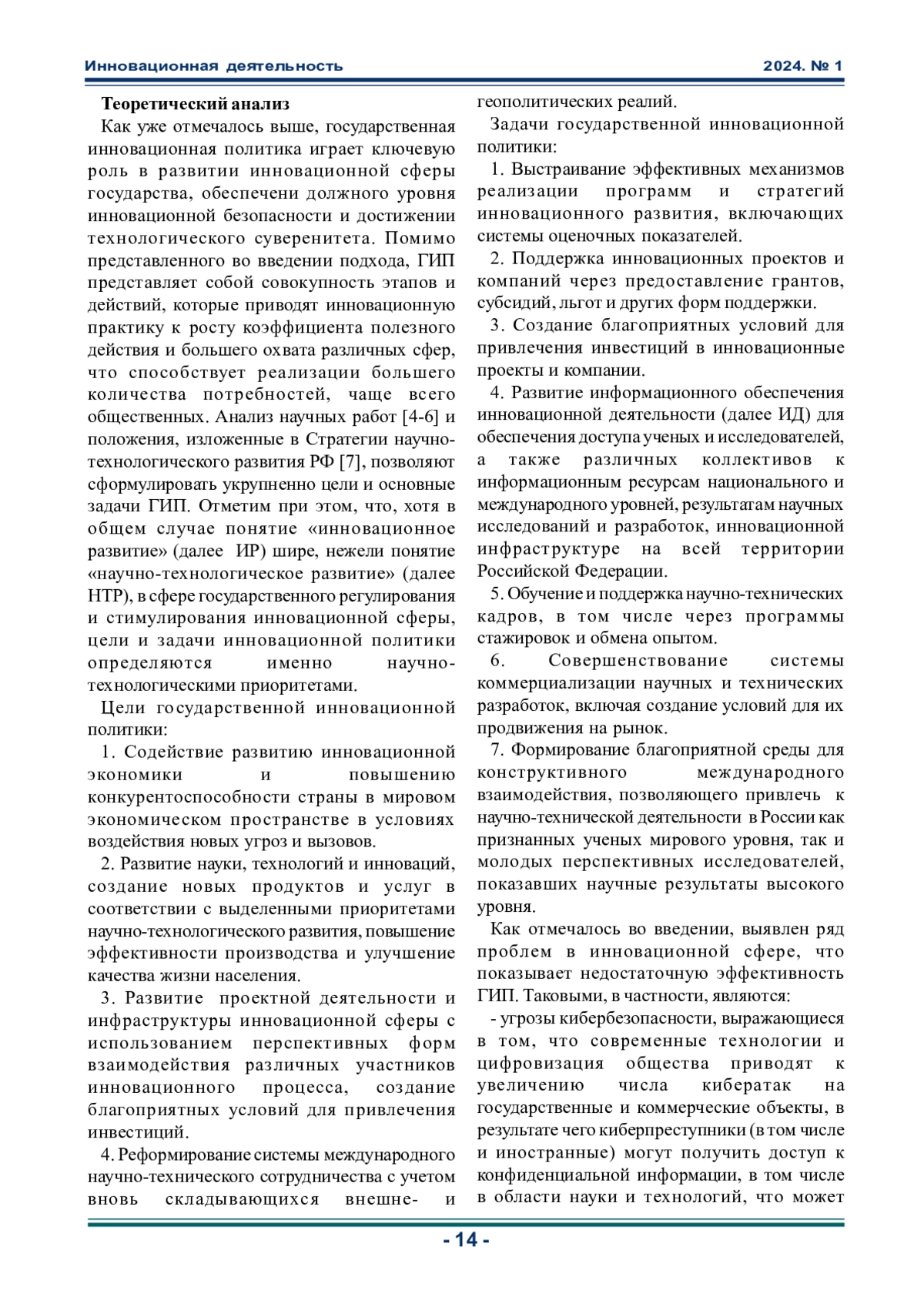 Статья: МОДЕЛЬ ГОСУДАРСТВЕННОЙ ИННОВАЦИОННОЙ ПОЛИТИКИ РОССИИ (2024)
