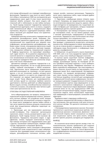 7. Кочесоков Р.Х. Особенности кибертерроризма и способы борьбы с ним со стороны мирового сообщества // Журнал прикладных исследований. 2023. № 4. С. 134-137. EDN: DXDKEJ