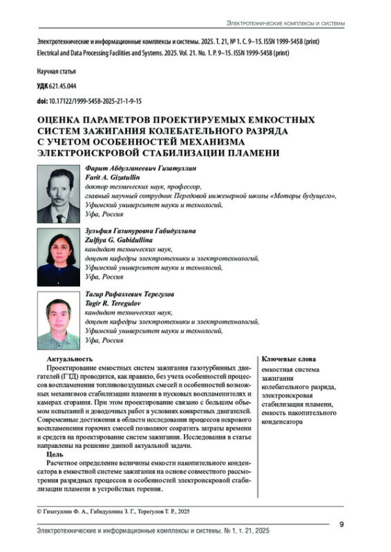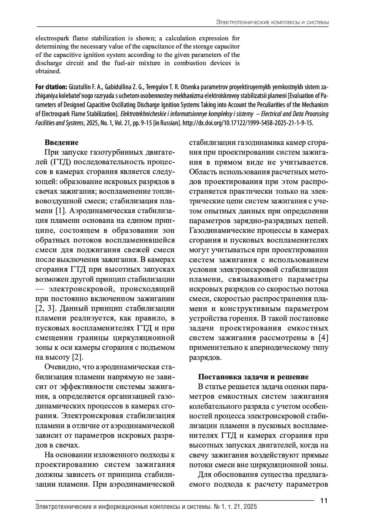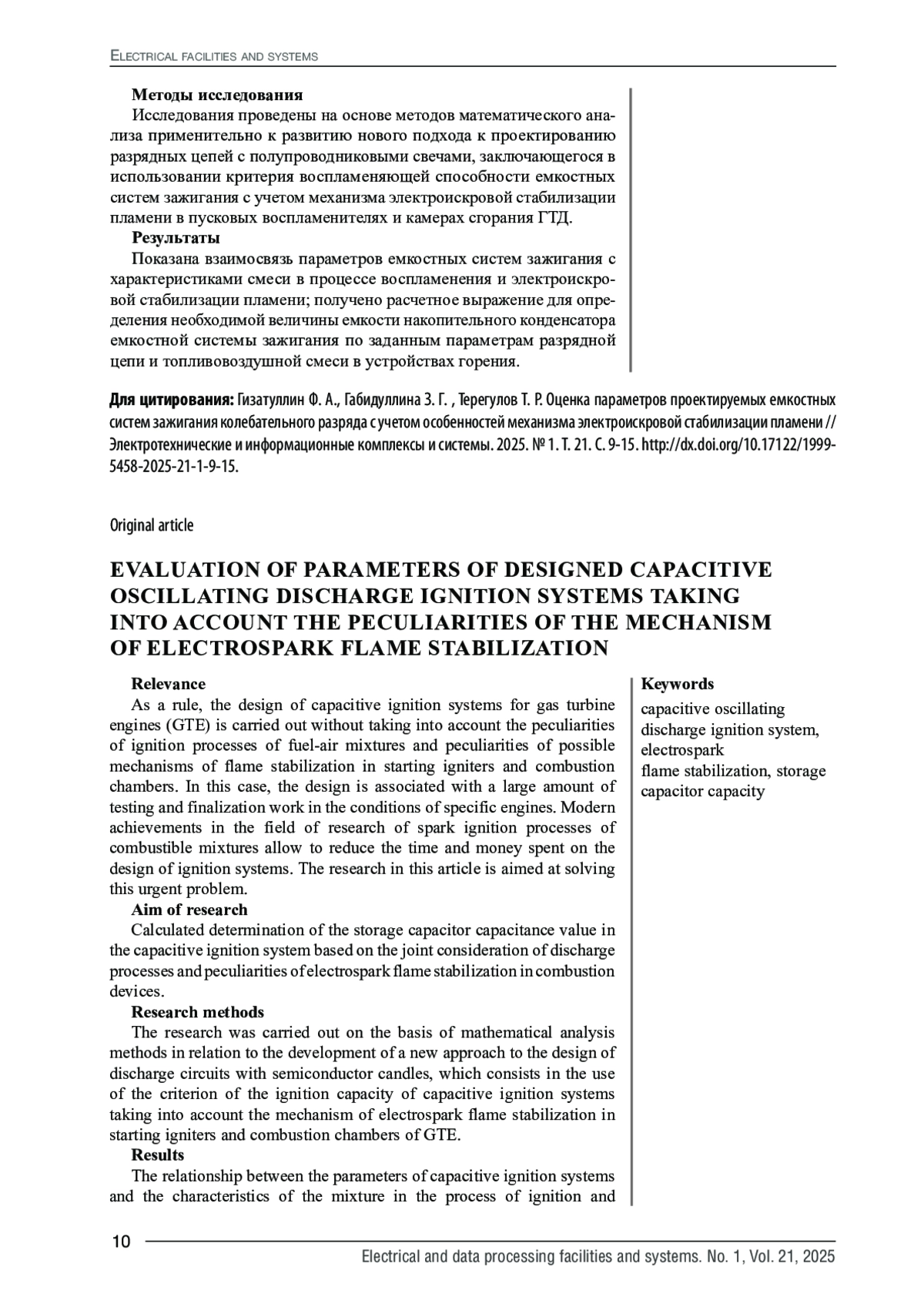 2. Гизатуллин Ф.А., Байбурин И.Х. Особенности определения параметров емкостных систем зажигания для ГТД с высотным запуском // Известия высших учебных заведений. Авиационная техника. 2004. № 2. С. 44-46. EDN: HKYGOX