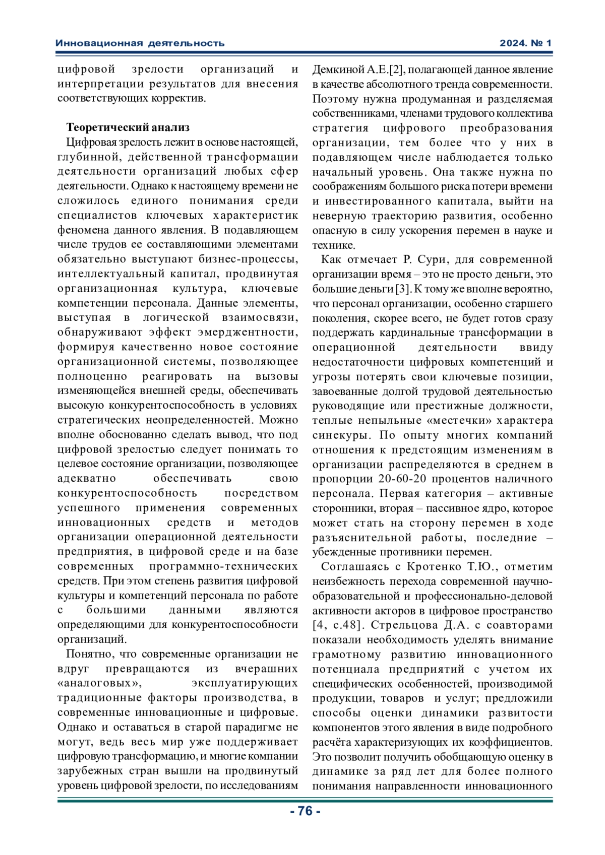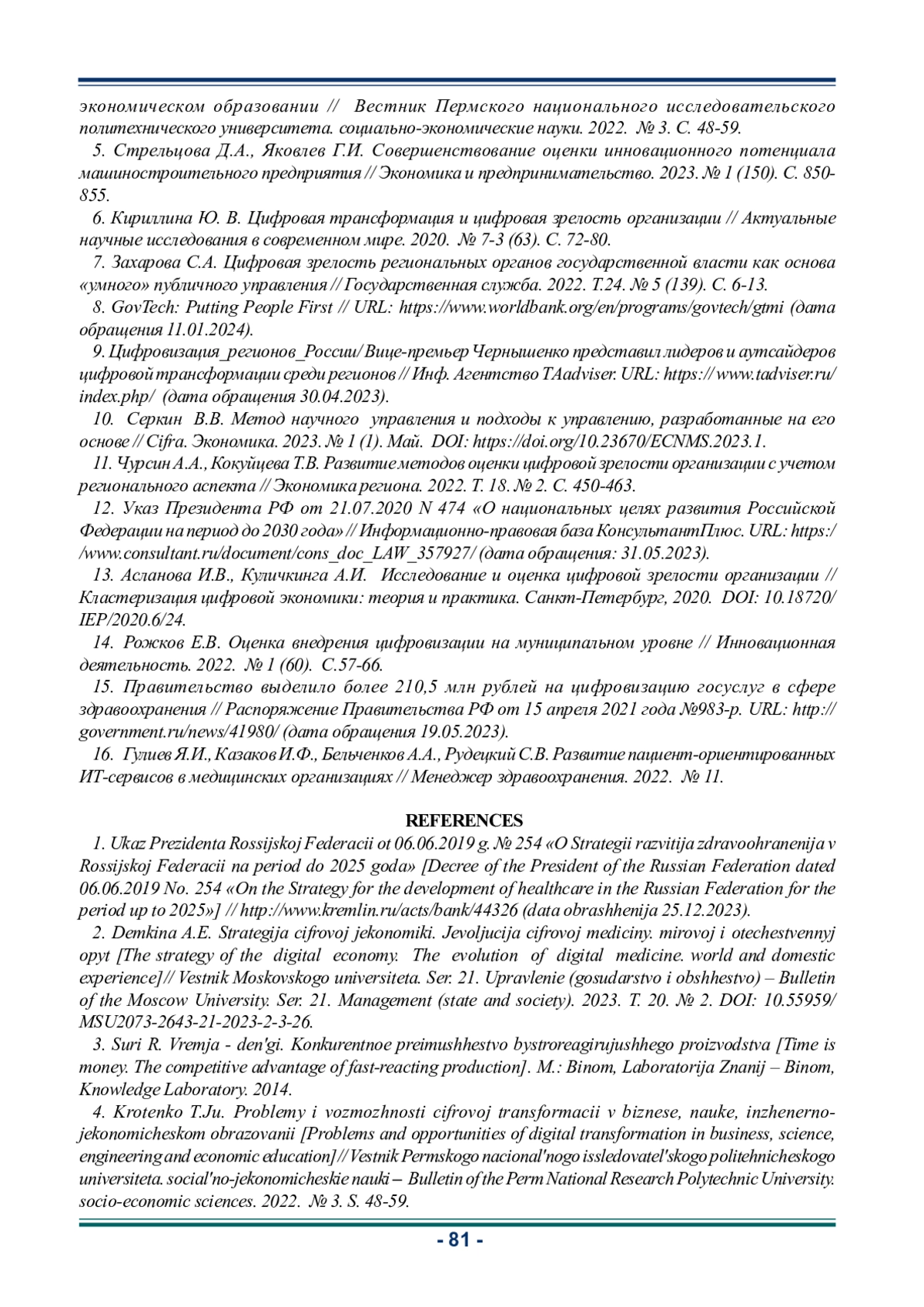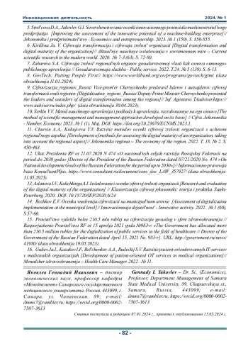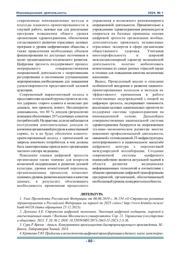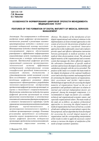 Статья: ОСОБЕННОСТИ ФОРМИРОВAНИЯ ЦИФРОВОЙ ЗРЕЛОСТИ МЕНЕДЖМЕНТА МЕДИЦИНСКИХ УСЛУГ (2024)