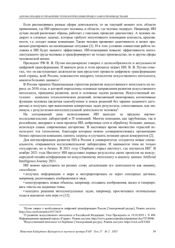 2. Мурзагалина Г. М., Китабанов А. Опыт применения искусственного интеллекта в производстве для повышения производительности и безопасности персонала // Московский экономический журнал. 2022. Т. 7. № 12. C. 474-482. Х_2022_7_12_715. DOI: 10.55186/2413046 EDN: GRSAFJ