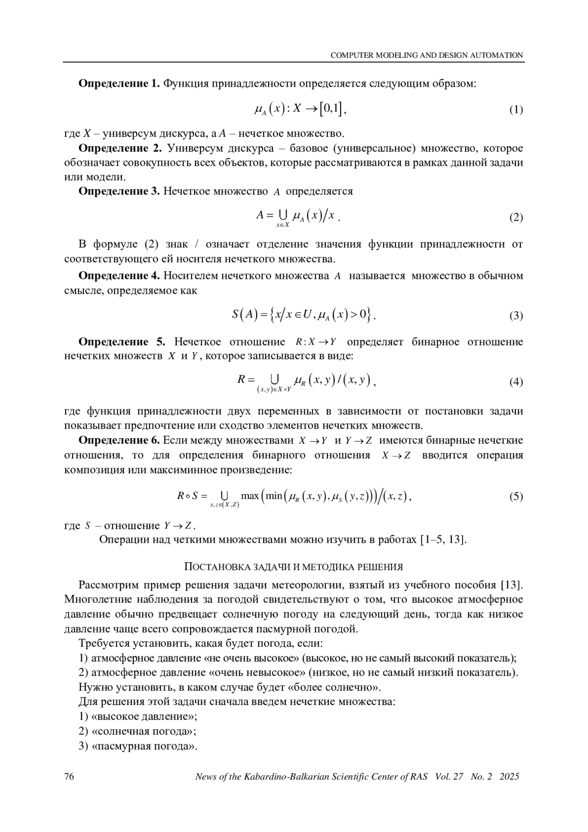 11. Małolepsza O., Mikołajewski D., Prokopowicz P. Using fuzzy logic to analyse weather conditions. Electronics. 2025. Vol. 14. No. 1. P. 85. EDN: VGOQFY