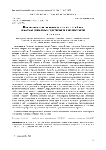 Санкции, введенные против России европейскими странами и Соединенными Штатами Америки, внесли коррективы в процесс импортозамещения и пространственного развития сельского хозяйства. В сложившейся ситуации под воздействием как внутренних, так и внешних факторов, проблема с рациональным размещением производства сельскохозяйственной продукции, сырья и продовольствия осложнилась. Необходимыми условиями обеспечения населения продовольствием являются рациональное использование биоклиматического потенциала, соответствующего эффективному производству продукции сельского хозяйства, создание специализированных зон в ареалах и регионах с наиболее благоприятными природными условиями. Цель исследования - разработка предложений по пространственному развитию отраслей сельского хозяйства России и созданию специализированных зон по производству сельскохозяйственной продукции, сырья и продовольствия. Методы исследования опираются на использование программно-целевого метода, предусматривающего формирование приоритетных направлений по пространственному развитию сельского хозяйства. Наличие больших различий в организации производства и особенно его подотраслей делает невозможным формирование подходов к их пространственной организации. Особого внимания требуют регионы с благоприятными природно-экономическими условиями и с небольшой численностью населения, где необходимо ведение интенсивного сельского хозяйства с высоким показателем конкурентоспособности, территории, относящиеся к приоритетным и геостратегическим, а также слабозаселенные. К ним относятся Нечерноземная зона, районы Крайнего Севера, республики Северного Кавказа. При этом с усилением дифференциации регионов по уровню производства отдельных видов продукции сельского хозяйства важную роль должно играть государство. В России особенностью пространственной организации развития сельского хозяйства является большое разнообразие территориальных, природно-климатических, социальных и экономических различий. Поэтому региональный аспект ведения не только отрасли, но и всех ее подотраслей, имеет одно из важных значений. Пространственное развитие в силу сложившихся современных условий связано с изменением производственной направленности предприятий, административных районов и регионов, нуждающихся в поступлении инвестиций и требующих определенного времени для осуществления данного процесса.