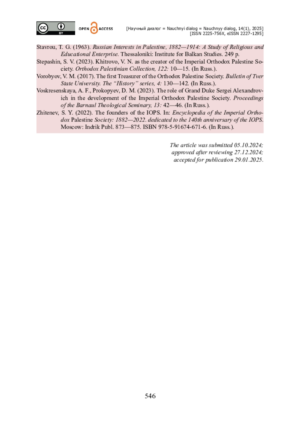 28. Степашин С. В. Хитрово В. Н. как создатель Императорского Православного Палестинского общества / С. В. Степашин // Православный Палестинский сборник. - 2023. - Выпуск 122. - С. 10-15.