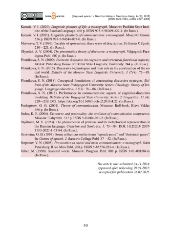 15. Плотникова С. Н. Концептуальные основания конструирования дискурсивных стратегий / С. Н. Плотникова // Вестник МГПУ. Серия : Филология. Теория языка. Языковое образование». - 2018. - № 3 (31). - С. 78-86.