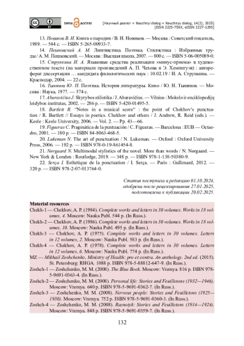 18. Bartlett R. “Notes in a musical score” : the point of Chekhov’s punctuation / R. Bartlett // Essays in poetics. Chekhov and others / J. Andrew, R. Reid (eds.). - Keele : Keele University, 2006. - Vol. 2. - Pp. 43-66.