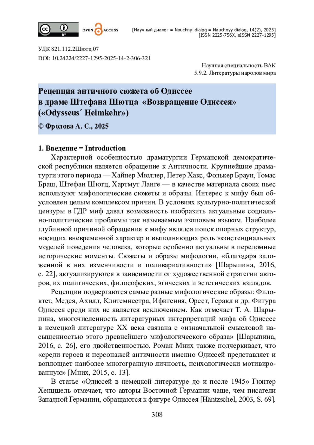 7. Мних Р. Одиссей в эпоху модернизма : концептуализация и символика образа / Р. Мних // «Вечные» сюжеты и образы в литературе и искусстве русского модернизма / ИНСТИТУТ МИРОВОЙ ЛИТЕРАТУРЫ ИМ. А. М. ГОРЬКОГО РАН. - Москва : Издательство “Индрик”, 2015. - С. 12-31.
