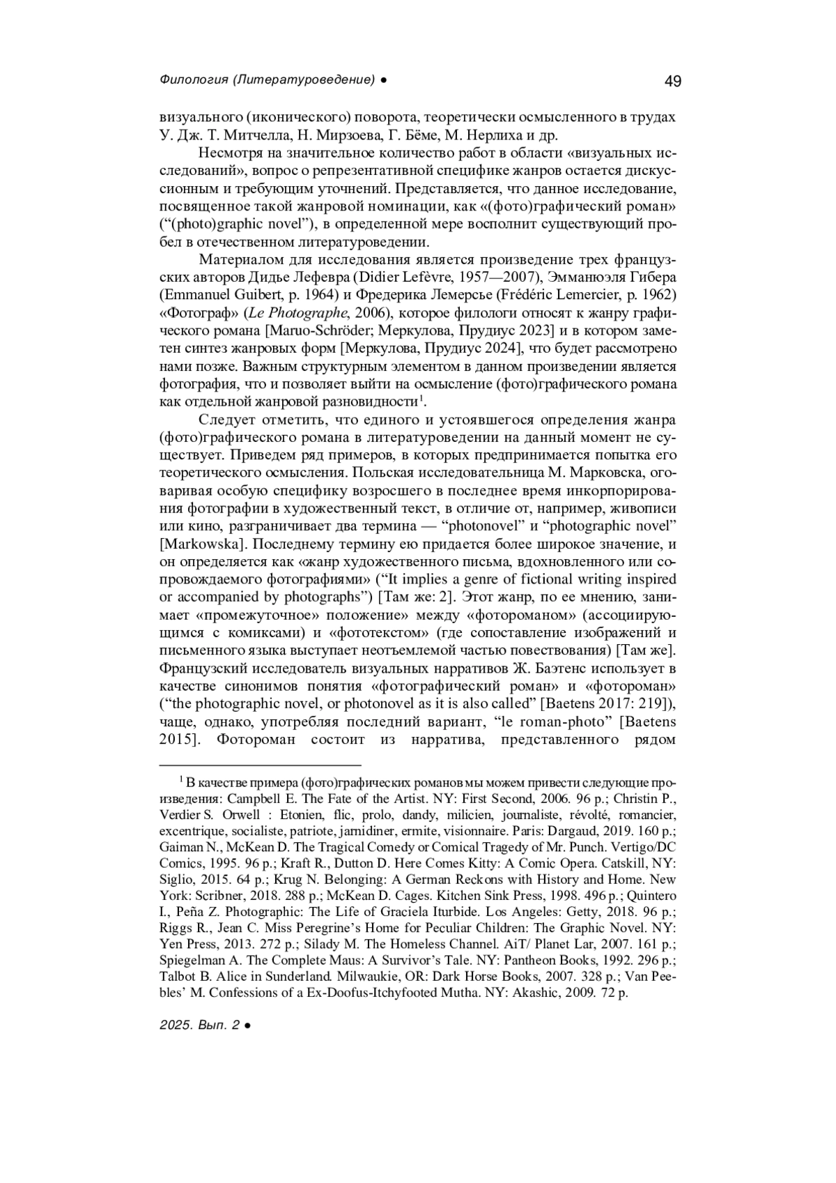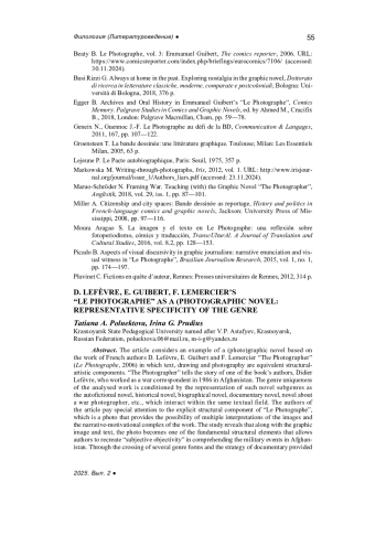 Статья: «ФОТОГРАФ» Д. ЛЕФЕВРА, Э. ГИБЕРА, Ф. ЛЕМЕРСЬЕ КАК (ФОТО)ГРАФИЧЕСКИЙ РОМАН: РЕПРЕЗЕНТАТИВНАЯ СПЕЦИФИКА ЖАНРА (2025)