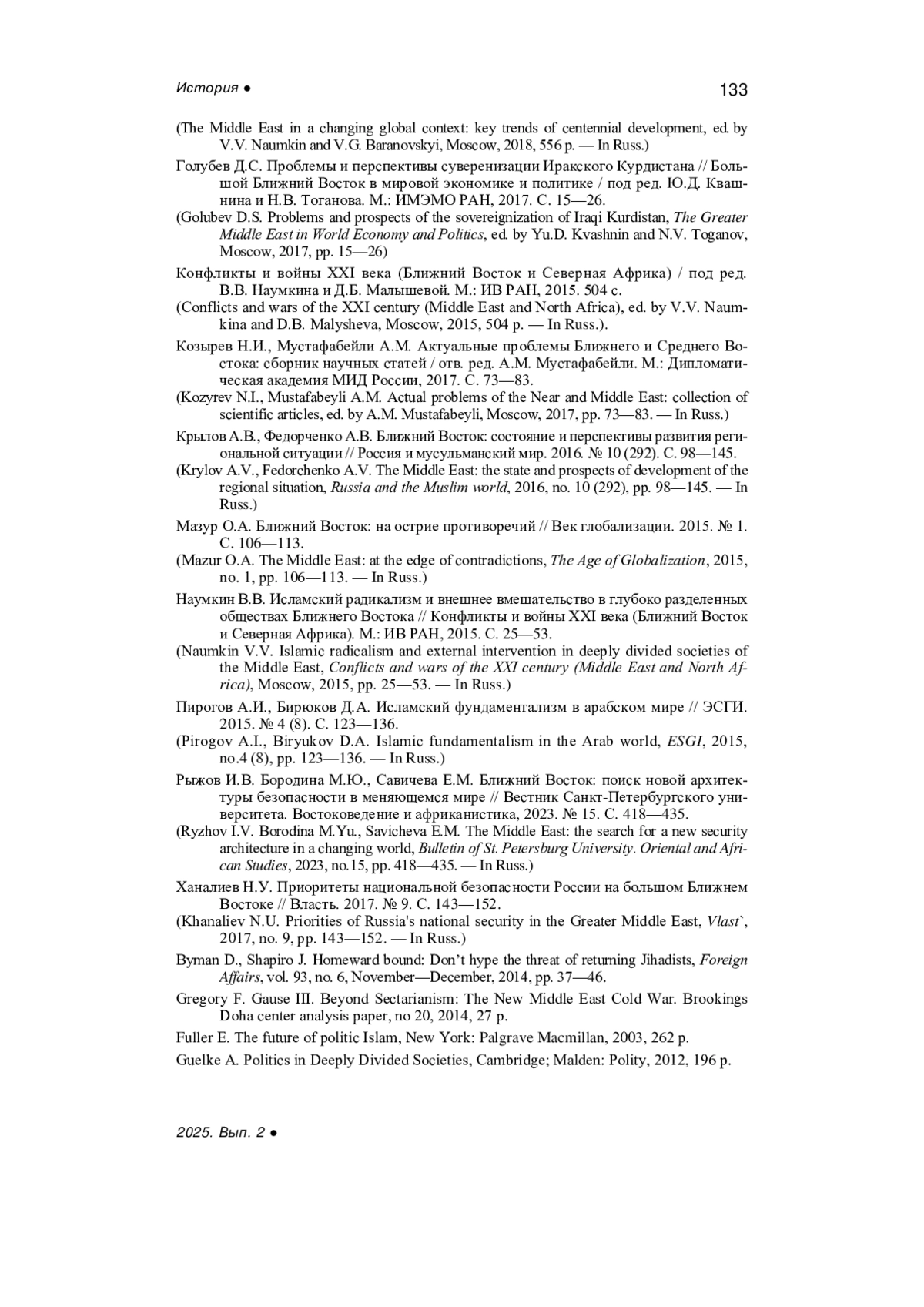 2. Актуальные проблемы Ближнего и Среднего Востока: сборник научных статей / отв. ред. А.М. Мустафабейли. М.: Дипломатическая академия МИД России, 2017. 169 с.
